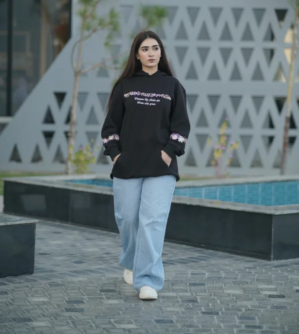 Black Oversized Embroidered Pull-Over