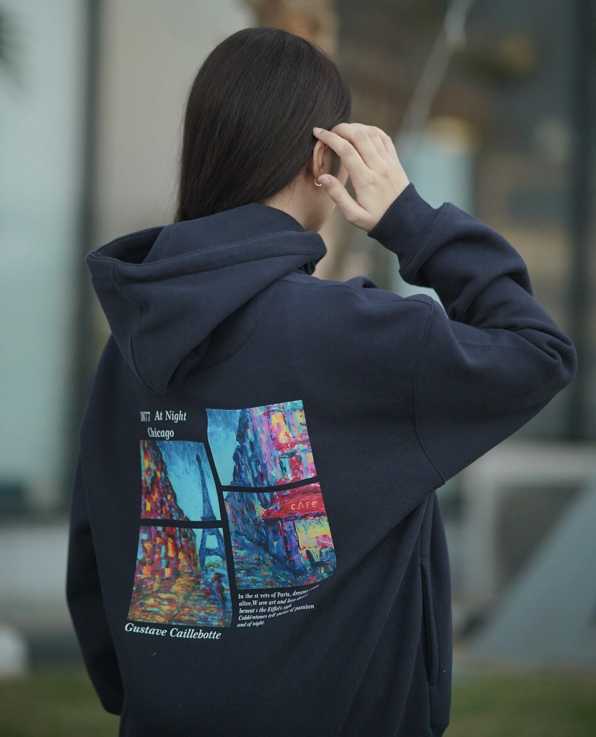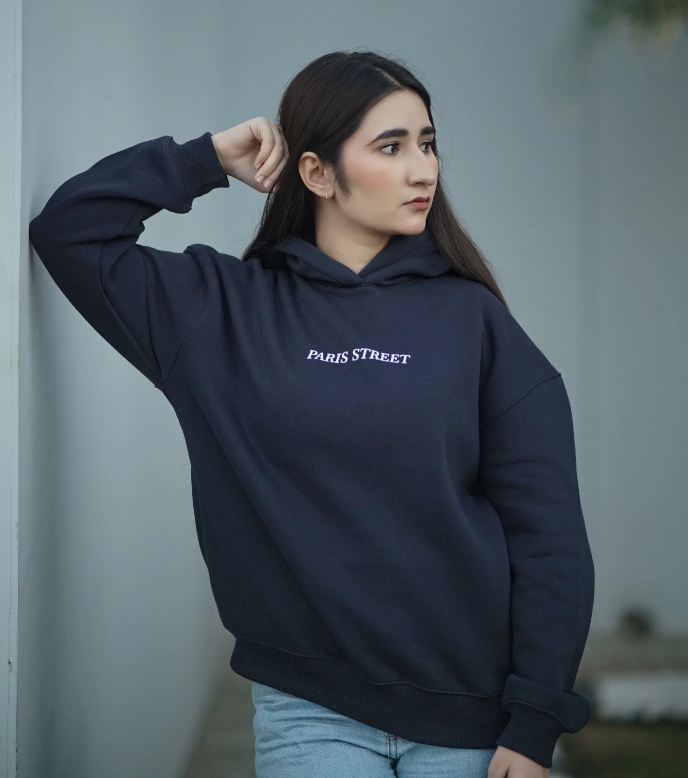 “Paris Street” Navy Blue Oversized Hoodie